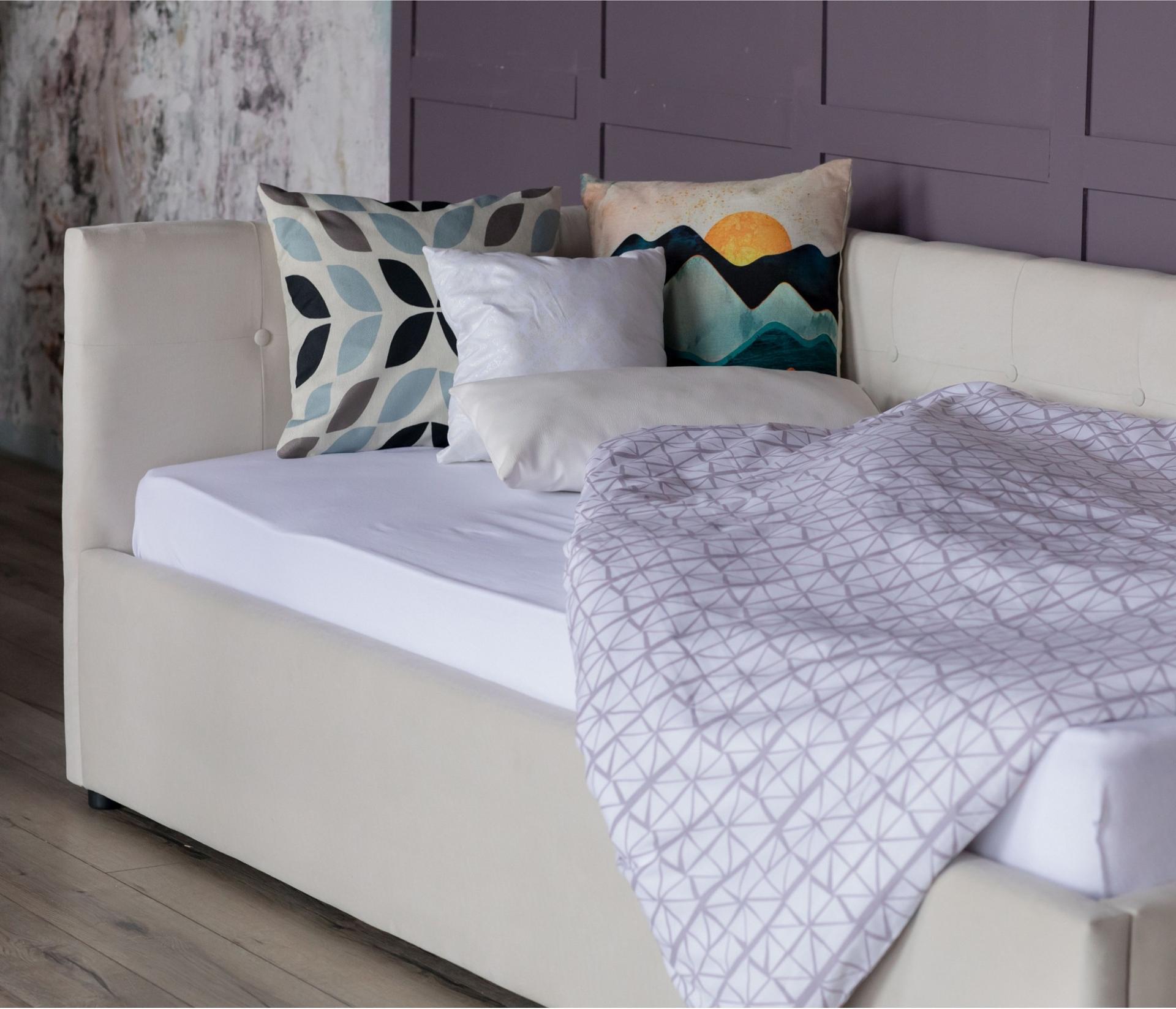 Односпальная кровать Bonna – уникальный предмет мебели, который совмещает в себе полноценную кровать и диван. Кровать с двумя мягкими спинками выполнена из модной мебельной ткани – велюр. Ткань износостойкая, легко чистится от загрязнений, практичная, эластичная, устойчивая к ультрафиолету.