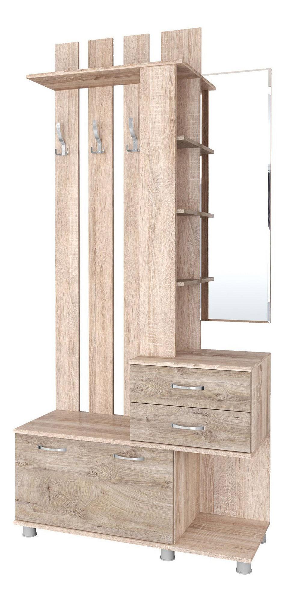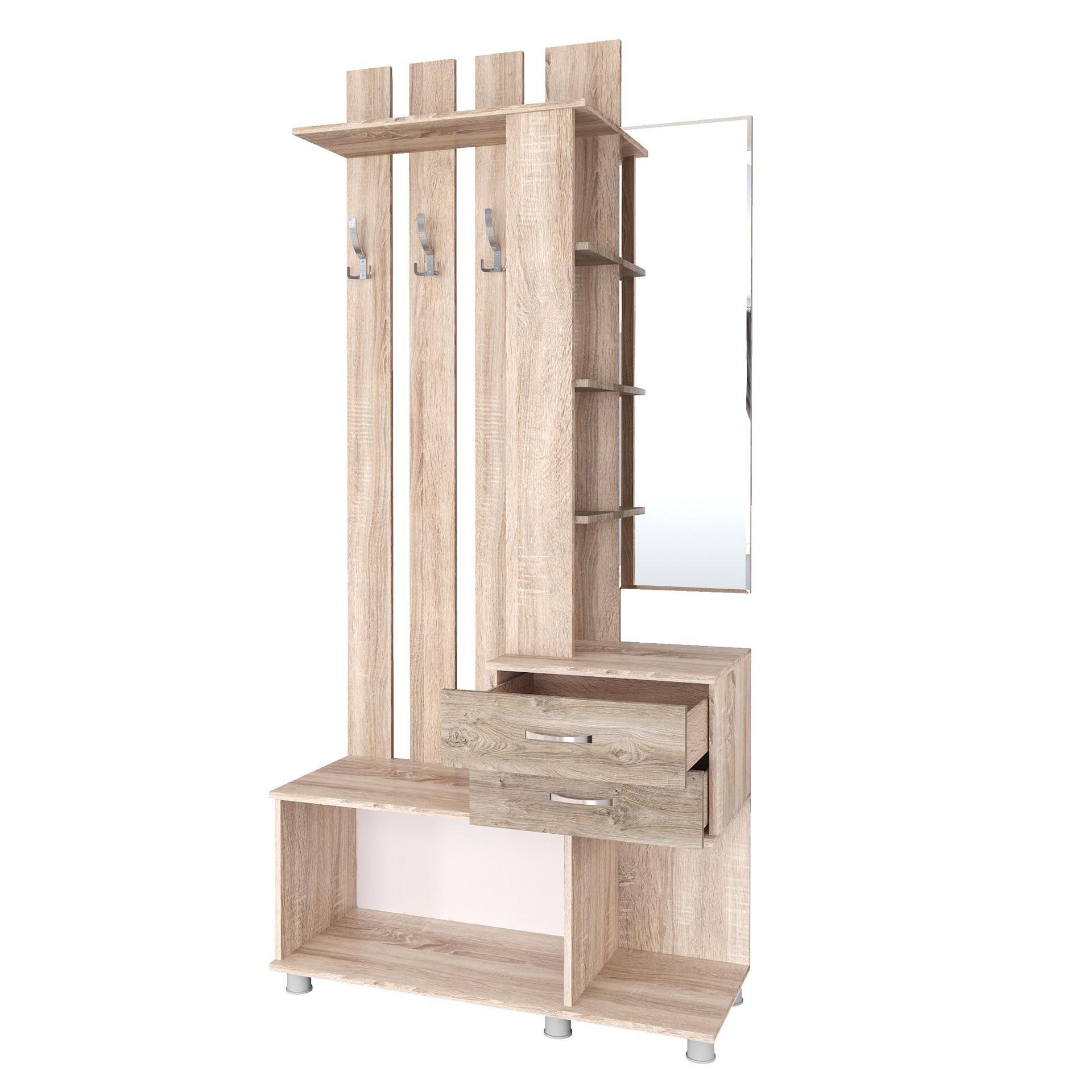 Когда все вещи находятся на своих местах – это залог красивого и аккуратного интерьера. Тем приятнее, когда зоной для хранения становится вместительная и практичная вешалка с тумбой Микс Арт TKS_00-00014723. Данная модель изготовлена компанией Тэкс и относится к коллекции «Микс Арт». Матовый корпус вешалки выполнен из износостойкого материала (ЛДСП Е1) и окрашен в благородный оттенок «дуб сонома». Производитель предлагает комплектацию, в которую входит: 1 откидная дверца,, 2 ящика,, 3 крючка,, 7 полок. Вешалка с тумбой Микс Арт стоит 9174 руб.