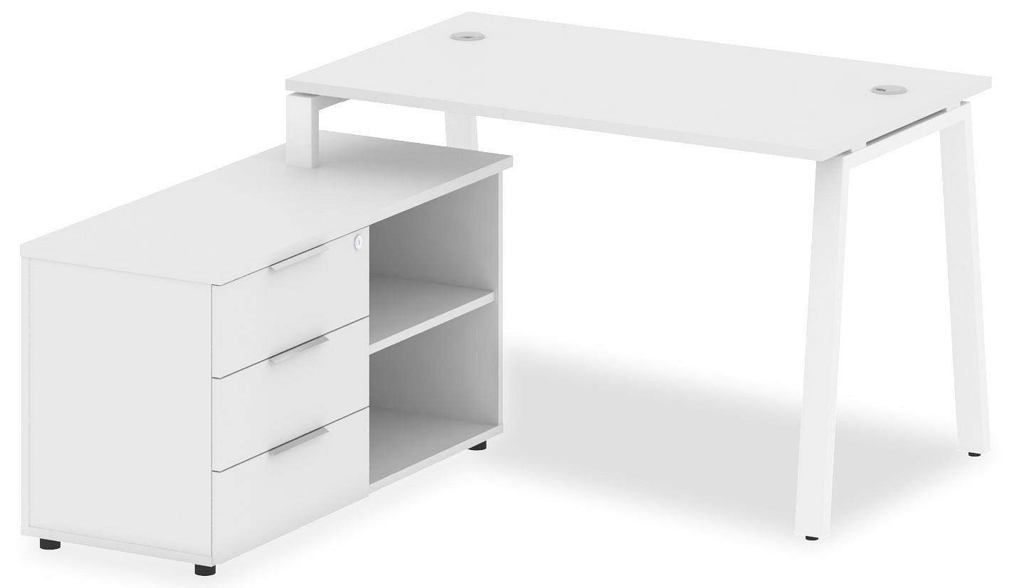 • 3 ящика. Для изготовления корпуса был выбран ЛДСП Е1, металл в оттенке белый, завершает дизайн матовый верхний слой, гармонично сочетающийся со столешницей. Приобрести данную модель вы можете по привлекательной цене, равной 31613 руб.