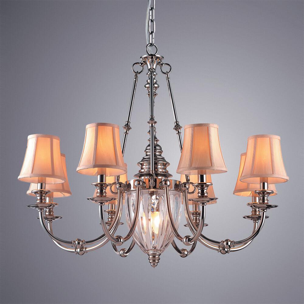 Изящная модель 1165/01 LM-8 от итальянской компании Divinare относится к коллекции Archeo и отлично подойдет для установки на потолок в гостиной, оформленной в классическом стиле. Подвесная люстра Divinare Archeo 1165/01 LM-8 с конусными плафонами осветит помещение площадью 17.8 кв. м. Производитель Divinare рекомендует использовать для устройства лампы накаливания с цоколем E14 и мощностью 40 W. Прибор произведен с использованием материалов: текстиль, металл и ткань и может использоваться для натяжного потолка. Основным цветом товара является бежевый и хромовый. Торопитесь сделать заказ в интернет-магазине SvetONe.