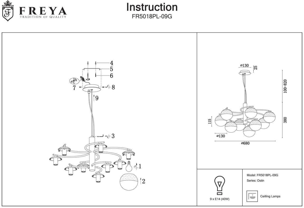 Подвесная люстра Freya Ostin FR5018PL-09G