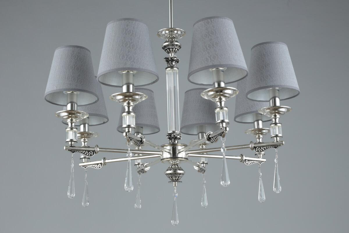 Выдающаяся модель OML-64203-08 от китайской компании Omnilux относится к коллекции Rivoli и отлично подойдет для установки на потолок в гостиной, оформленной в классическом стиле. Подвесная люстра Omnilux Rivoli OML-64203-08 с плафонами-конусами осветит помещение площадью 18 кв. м. Производитель Omnilux рекомендует использовать для устройства лампы накаливания с цоколем E14 и мощностью 40 W. Прибор произведен с использованием материалов: текстиль, металл и ткань и может использоваться для натяжного потолка. Основным цветом товара является серый и серебристый. Подвесная люстра OML-64203-08 продается по цене 27280 руб. Торопитесь сделать заказ в интернет-магазине SvetONe.
