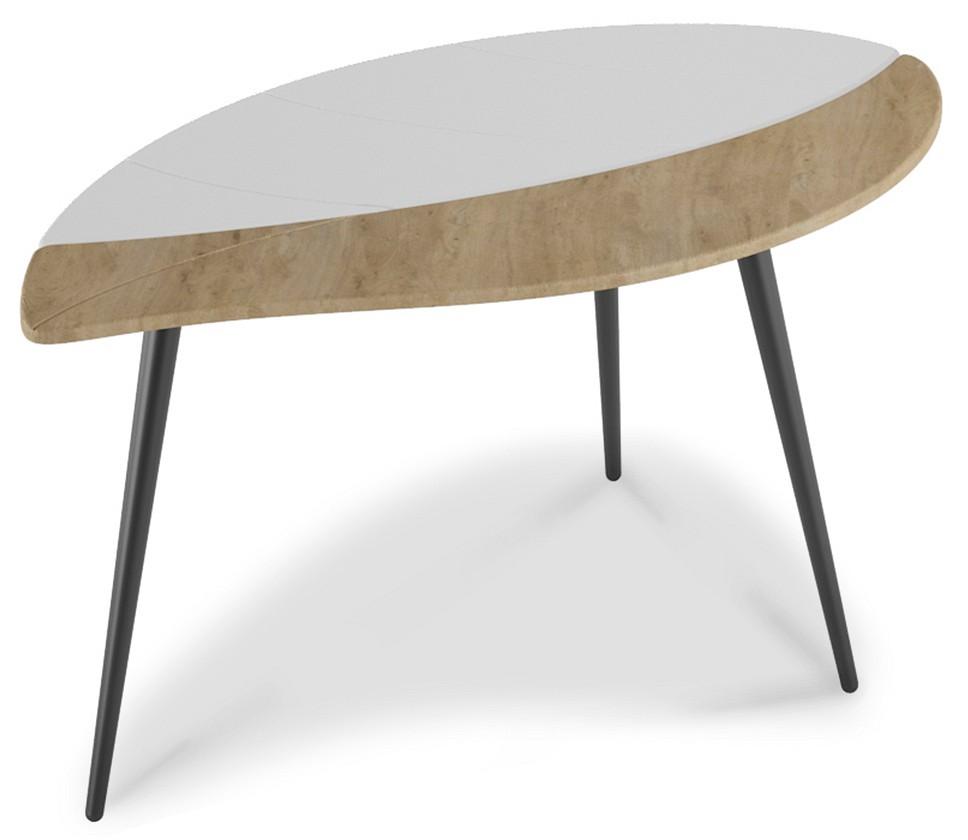 Журнальный стол вносит в интерьер гостиной комфорт и подчеркивает его эстетику. Особенностью дизайнерского решения журнального стола Лайм является оригинальное сочетание фрезеровки столешницы в форме листа дерева и текстуры декоративного покрытия. Облегченные опоры черного цвета выполнены из дерева.