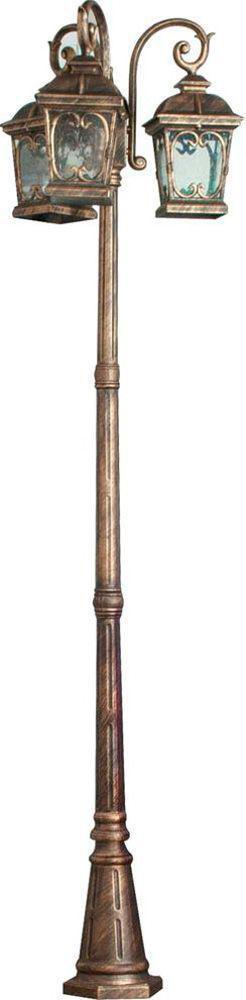 Светильник садово-парковый, серии «Стокгольм» (НТУ) FERON PL145 3*100W, E27, 230V, IP44, цвет черное золото, 4х-гранник Лепнина, столб 2м *3, 640*640*2470мм
