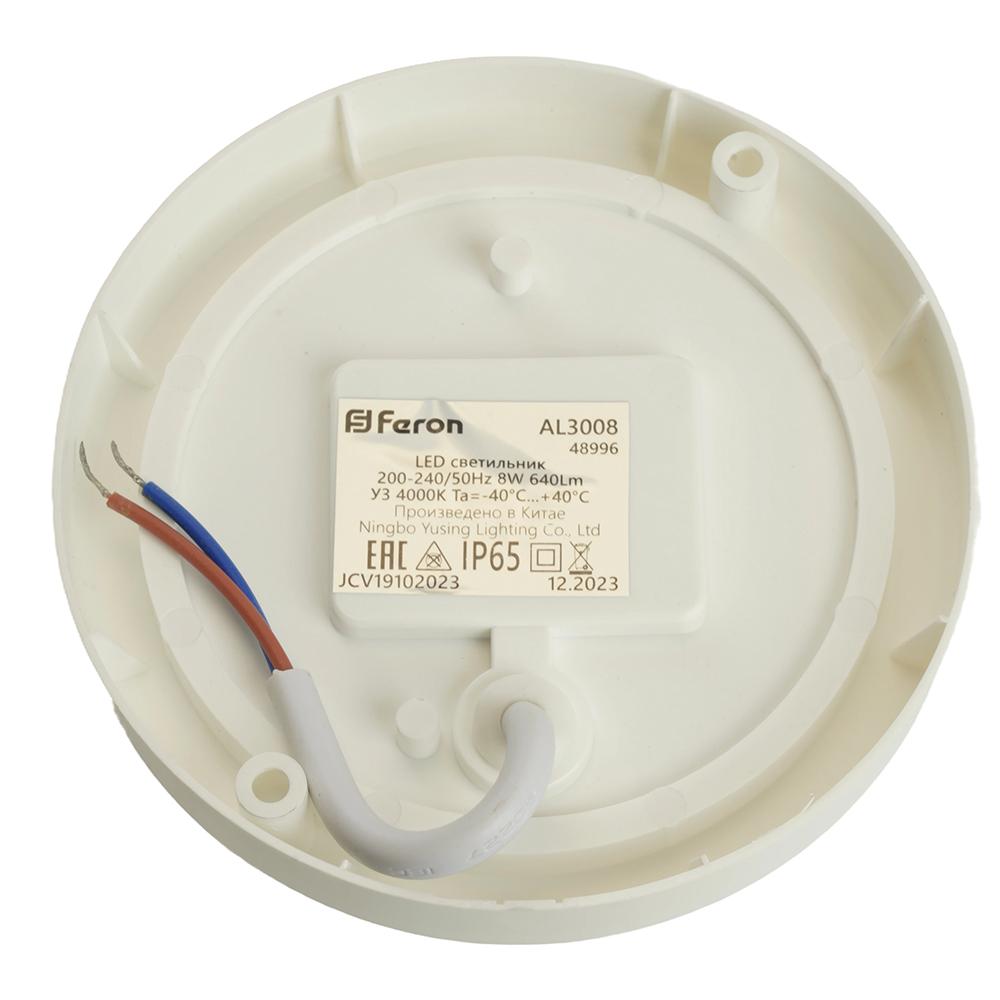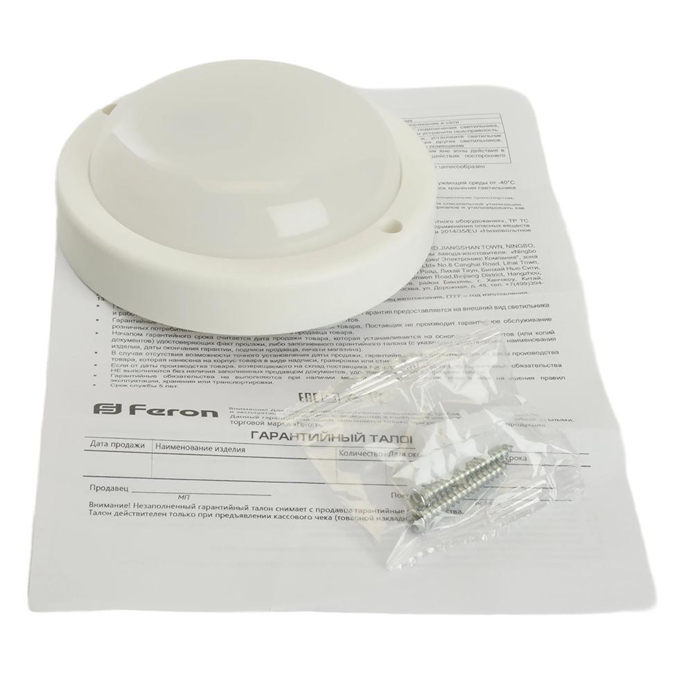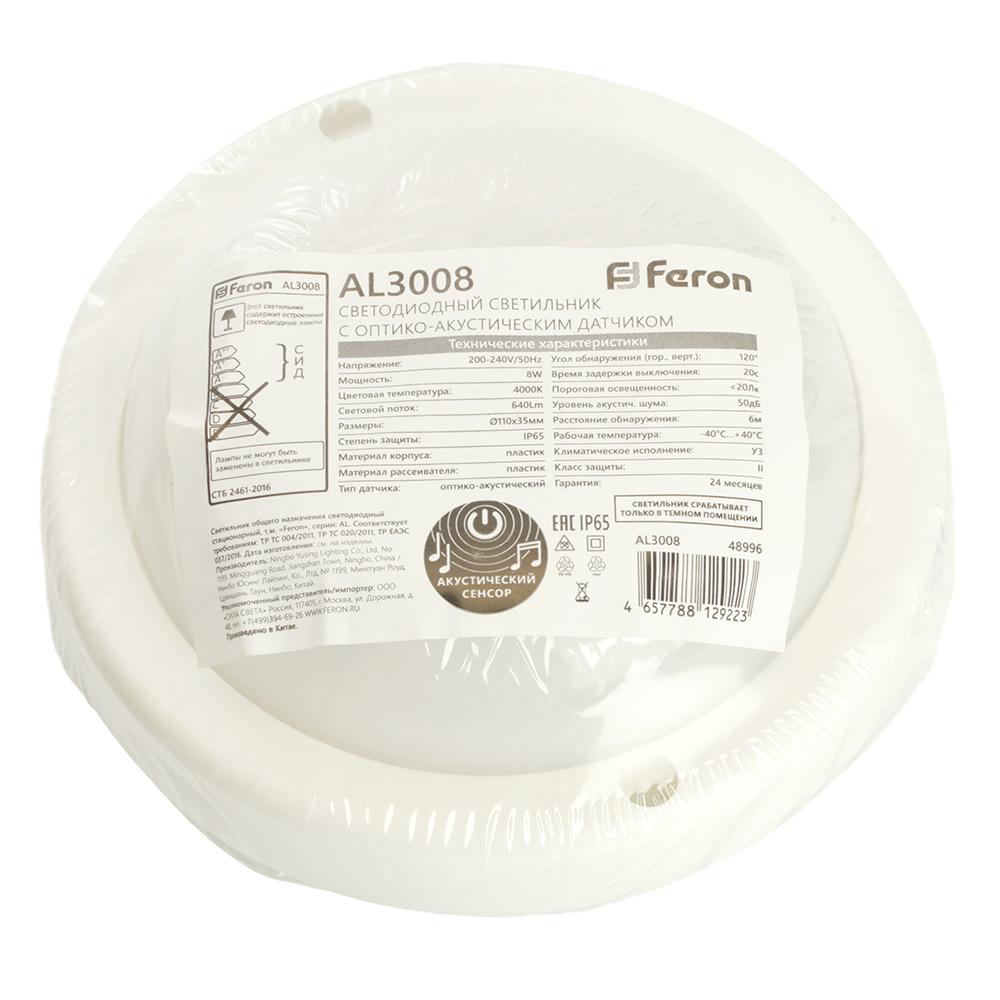 Светильник светодиодный пылевлагозащищённый с оптико- акустическим датчиком Feron AL3008 в пластиковом корпусе 8W 4000K 220V IP65 белый 48996