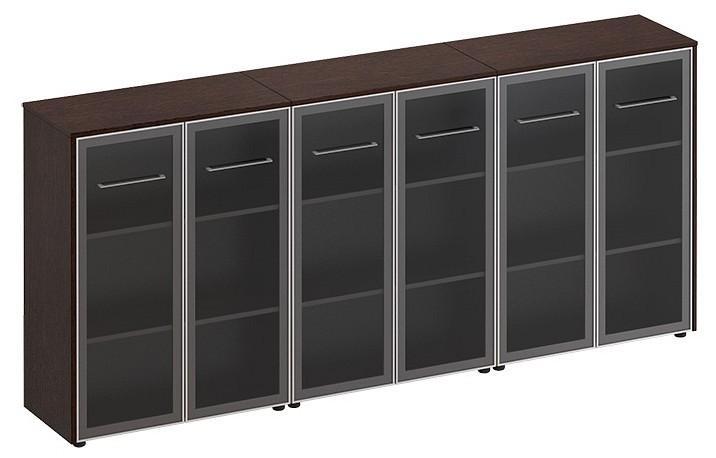 Тумба-витрина состоит из трех шкафов со стеклом для документов под общим топом.